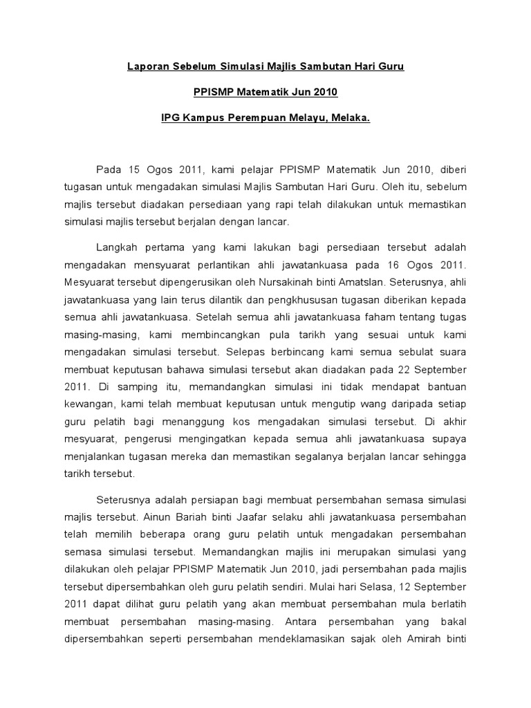 Laporan Sebelum Simulasi Majlis Sambutan Hari Guru Pdf