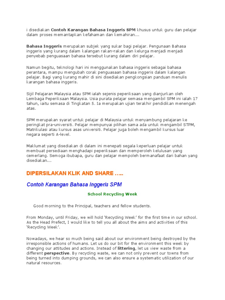Dipersilakan Klik And Share Contoh Karangan Bahasa Inggeris Spm Pdf